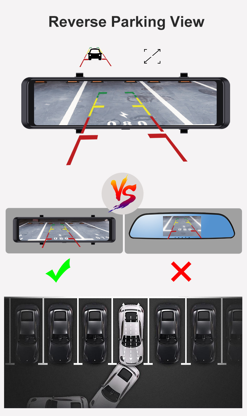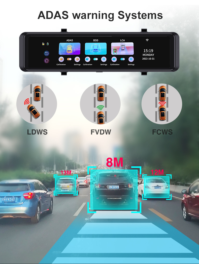This advanced rearview mirror dash cam combines high-quality 4K recording with comprehensive safety and assistance features to ensure a secure driving experience day and night. Featuring a large 11.26-inch IPS touchscreen and dual-camera setup (front and rear), it is ideal for daily commuting, long-distance driving, and reliable accident documentation.