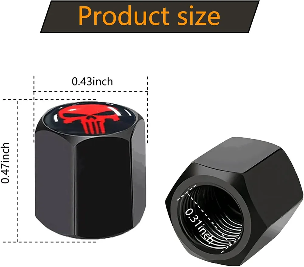 Skull Tire Valve Caps – Zinc Alloy Dustproof Anti-Theft Air Valve Stem Covers