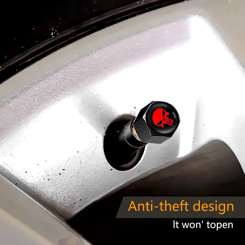 Upgrade your vehicle’s style and protection with these anti-theft skull tire valve caps. Made from premium zinc alloy, they are corrosion-resistant, waterproof, and heat-resistant, ensuring long-lasting durability. In addition to protecting tire valves from dust, sand, and moisture, these caps add a bold decorative touch that showcases your unique personality. Ideal for cars, motorcycles, bicycles, and more.