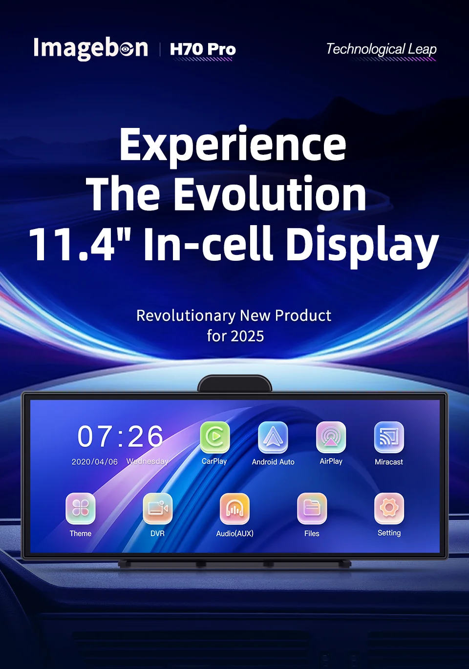 Imagebon H70 Pro 11.4" 4K ADAS Dash Cam – Wireless CarPlay & Android Auto | Dual Camera | GPS & Night Vision